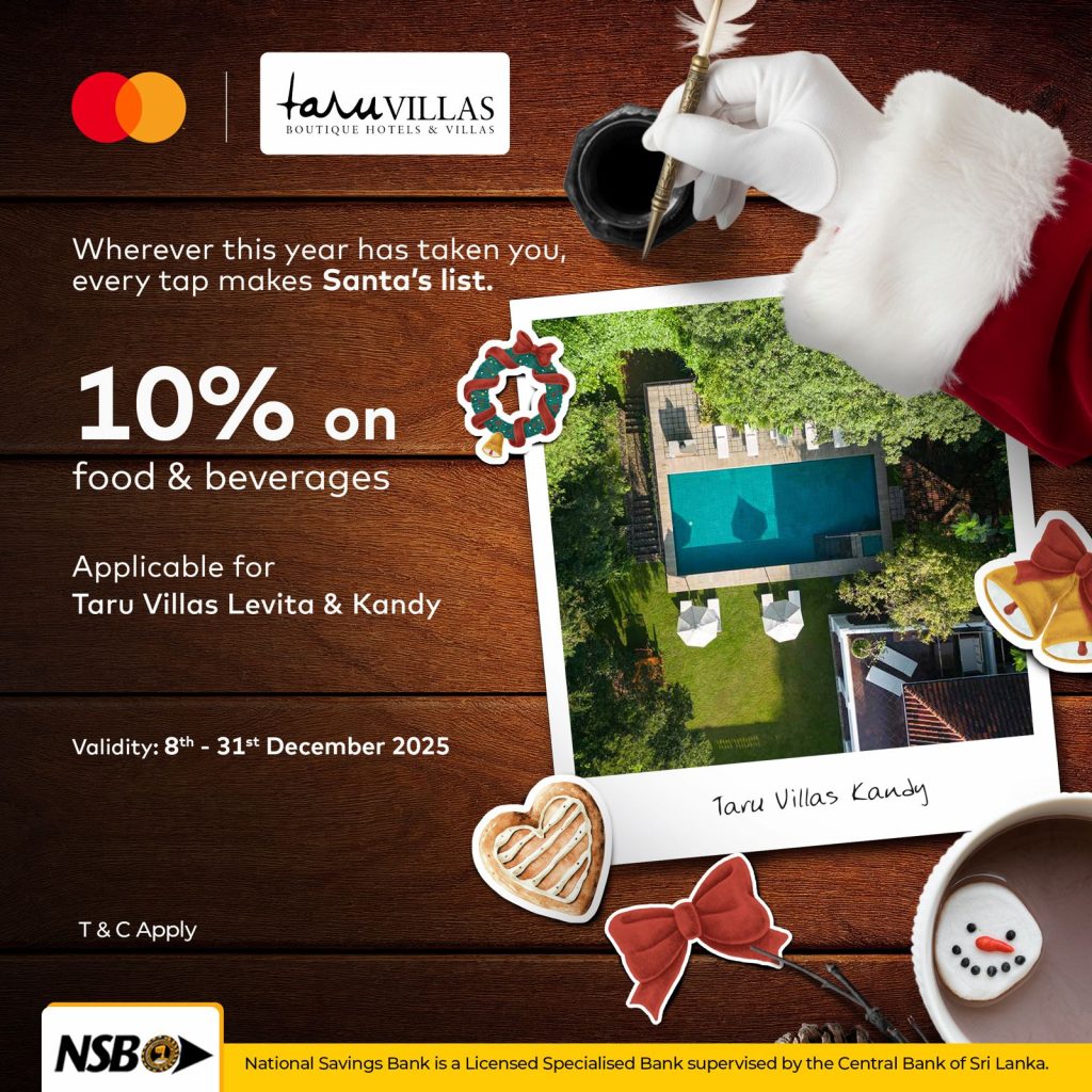 Enjoy a 10% off at Taru Villas Levita & Taru Villas Kandy with your NSB Mastercard Debit Card!